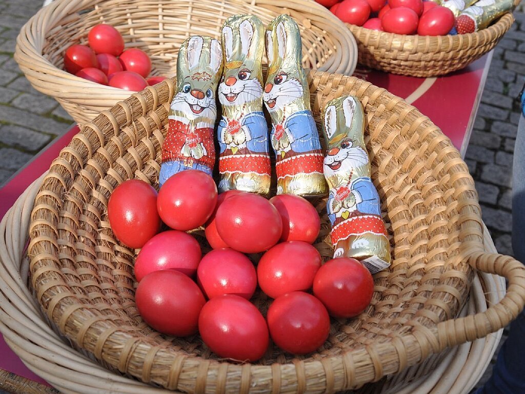 Der Osterhase verteilt bunte Ostereier an die Gäste – eine kleine Aufmerksamkeit, die Groß und Klein ein Lächeln ins Gesicht zaubern soll.