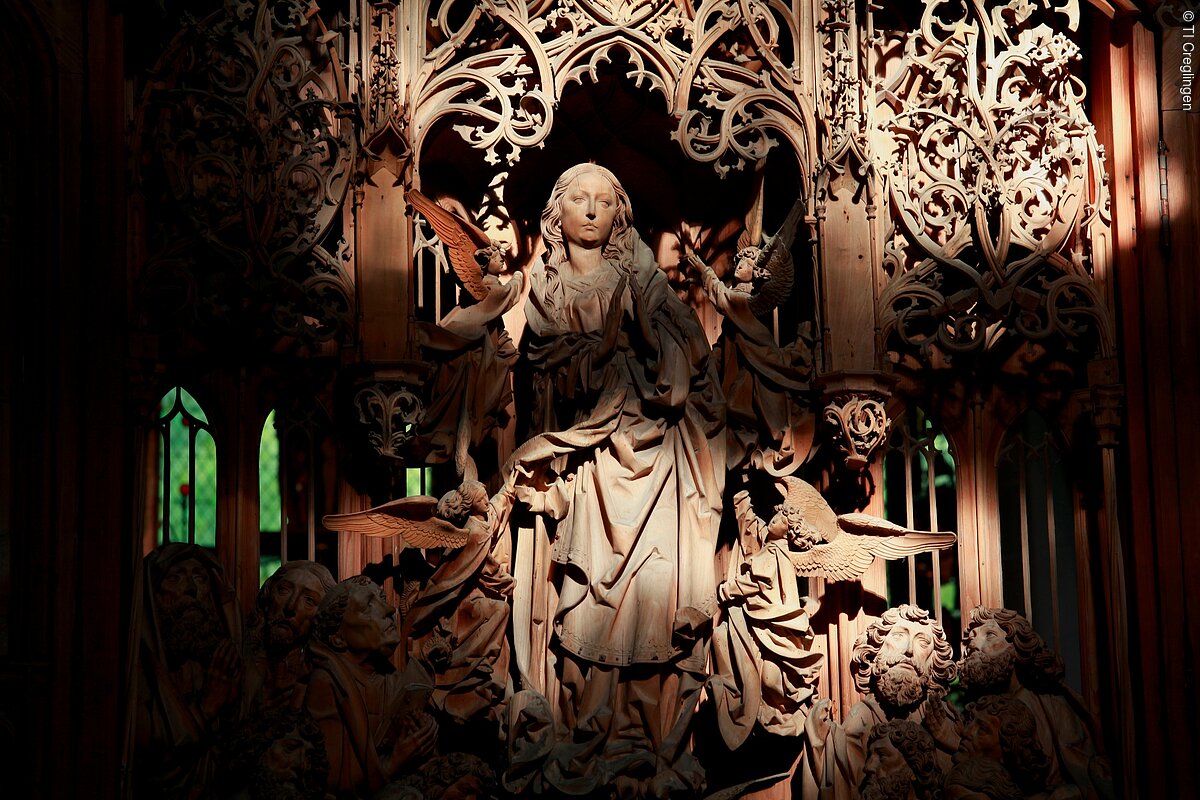 In der Creglinger Herrgottskirche wird in dieser Woche täglich von 17-18 Uhr die künstliche Beleuchtung in der Kirche ausgeschaltet. So kann der Besucher der Kirche die Darstellungen im Marienaltar so sehen, wie ihn damals der Künstler Tilman Riemenschneider erschaffen und gesehen hat…(Montags ist die Kirche geschlossen)