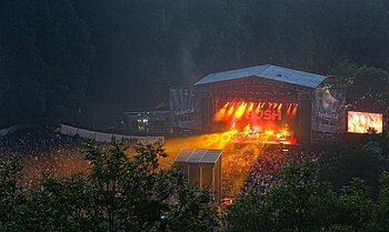 Rock vor mittelalterlicher Kulisse - unten im Taubertal tausende Zuhörer, oben die beleuchtete Stadtmauer von Rothenburg ob der Tauber. Das ergibt zusammen eine Atmosphäre, wie sie schöner nicht sein könnte. Das Taubertal Festival in Rothenburg ist Kult geworden!